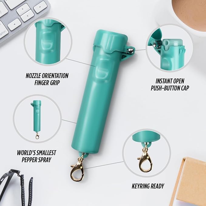 - Snap and Go Keychain Clip: Our mini pepper spray keychain easily attaches to your keys, bag, or purse. Detach in an instant — perfect for women on the move, runners, commuters, and travelers
