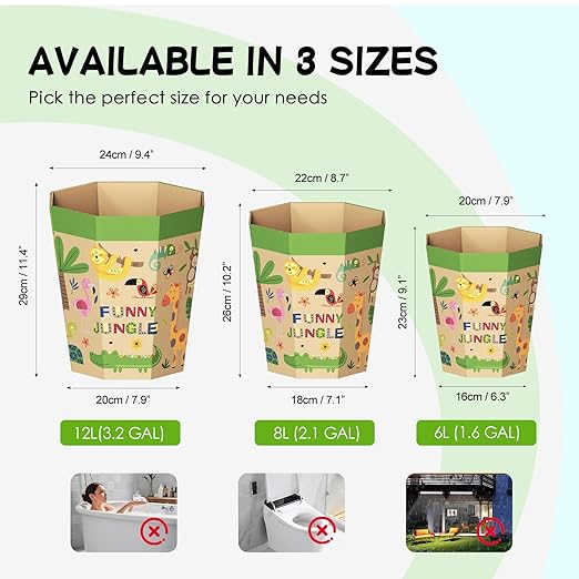- Ideal for Multiple Spaces & Occasions: From kids’ bedrooms and study areas to classrooms, activity centers, and play zones—these garbage cans fit right in. They’re also great for outdoor use at picnics, camping trips, birthday parties, and other family events. Use them anywhere you need quick, convenient, and eco-conscious waste disposal. Note: Not for bathrooms or damp environments.