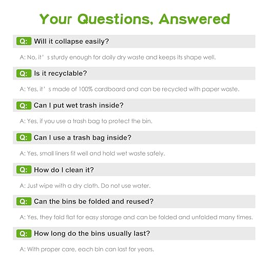 - Designed for a Waste-Free Lifestyle: Made from 100% recycled cardboard and entirely plastic-free, these trash cans are built for a zero-waste lifestyle. They’re lightweight yet strong enough for everyday use—offering a practical and responsible alternative to traditional plastic rubbish bins without sacrificing durability or function.