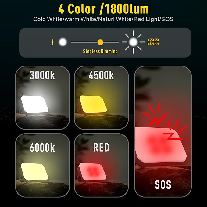 - 4 - Color Light & SOS- This camping lantern offers a variety of lighting options. You can easily switch between warm light, natural light, white light, and red light. Adjusting the brightness of the bulb is simple with the “+ - ” key. Additionally, it features a separately - adjustable SOS mode, making it suitable for various outdoor activities like camping, mountaineering, night fishing, traveling, as well as for disaster preparedness and power outages.