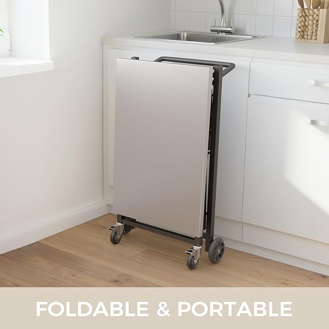 - 【Portable and Foldable】This foldable grill cart can be fully unfolded in just 20 seconds, offering ample room for all your cooking necessities. When not in use, it folds compactly for storage in narrow spaces like closets or car trunks, making it ideal for small patios, kitchens, or on-the-go adventures