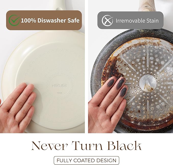 - Fully Coated Design (Never Turn Black): No more blackened bottoms! Enjoy a sauce pan that stays fresh, cleans effortlessly in the dishwasher, and lasts longer with everyday use