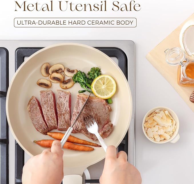 - Longer Lifespan (Metal Utensil Safe): Built for long-term use, the StickProofX ceramic coating withstands metal utensils and keeps its nonstick performance intact—even after 2 years of daily cooking