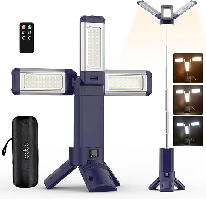 10000mAh Rechargeable 4000LM Camping Light Telescopic Camping Lantern , 270° Rotating Aluminum , Remote Control, Warm/White/Nature, Dimmable for Outdoor Camping, IP45 Waterproof,Portable Bag