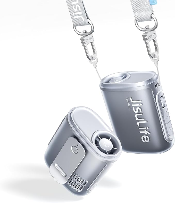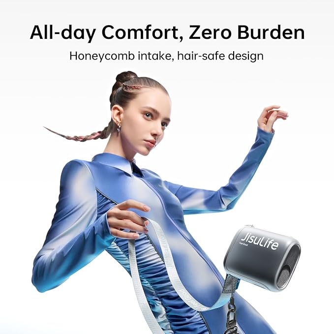 - 100-Speed Turbo Power with High-Efficiency Motor: Neck fan with 9-blade turbo fan and brushless motor blasts 8.5m/s winds (10cm distance) at 40,000 RPM max—100 adjustable speeds from breezy to hurricane-grade cooling! High performance ensures rapid cooling, roller adjusts wind speed, balances strong power and portability, and provides an efficient heat dissipation experience integrated with wearable design