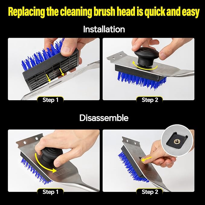 - 【Replaceable Grill Brush Head】This no wire grill brush lasts longer than grilling season, but just in case you want to freshen up your grill tools, we also make a replacement brush head.