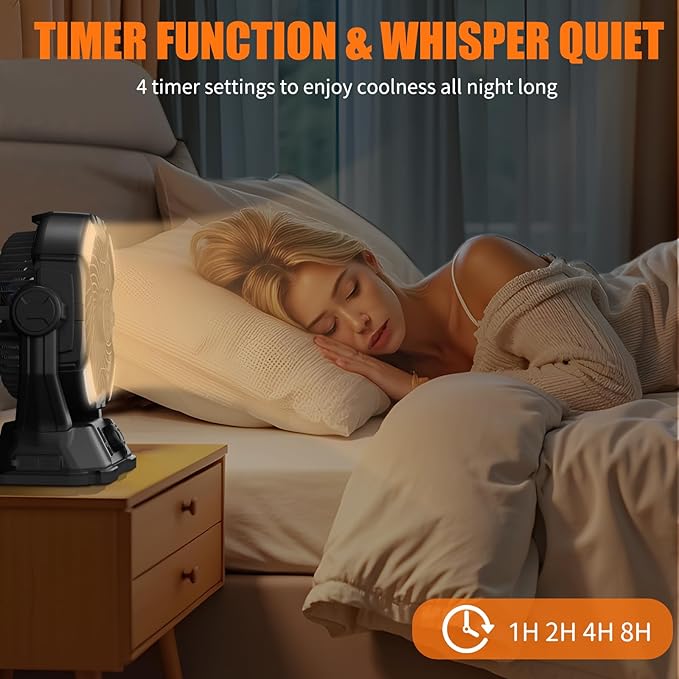 - 【TIMER FUNCTION】Portable fan with mist has four timing modes of 1/2/4/8H allow you to set time as you want and enjoy personalized convenience. The portable mist fan will automatically shut off after the desired time you set, make you have a cozy night.