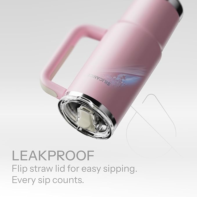- PERFECT FIT, EVERY TIME: With a NO-slip handle and a narrow base that fits most car cup holders,Narrow base fits 90% vehicle holders; Carry Handle Water Bottle with Handle & Straw prevents slips during runs or drives. 100% leak-proof design completely solves the problem of fitting some car cup holders the SILICANICE tumbler with handle is as easy to carry as it is to store. Ideal for your commute, gym bag, or next road trip, this insulated tumblers is always right by your side.