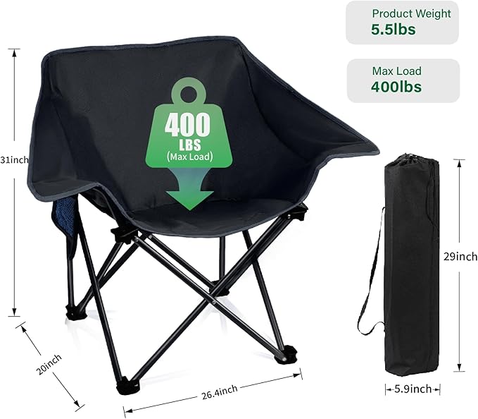 - Heavy-Duty and Durable Construction: FREETOUR portable camping chair is made with 600D Oxford fabric and a heavy-duty powder-coated steel frame. It holds up to 400 lbs, with 0.9mm thick steel tubes ensuring maximum strength and durability for long-term outdoor use