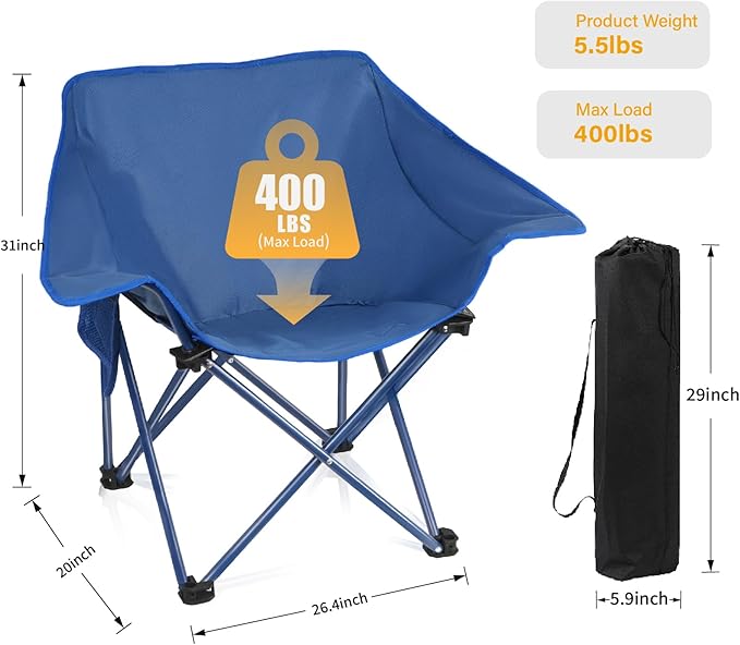 - Heavy-Duty and Durable Construction: FREETOUR portable camping chair is made with 600D Oxford fabric and a heavy-duty powder-coated steel frame. It holds up to 400 lbs, with 0.9mm thick steel tubes ensuring maximum strength and durability for long-term outdoor use