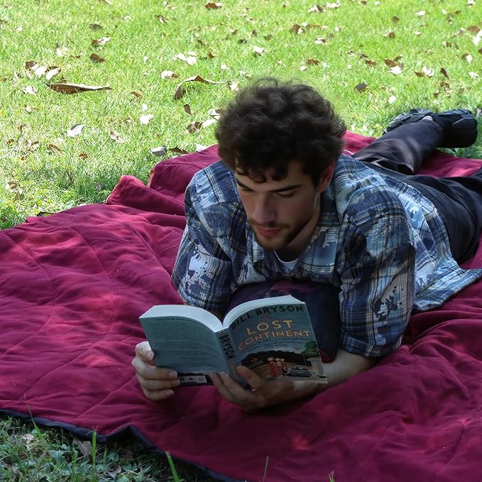 - WATERPROOF AND WARM:This fleece camping blanket is designed with three layers of waterproof and windproof nylon with a polyurethane coating and 300 grams per square of embossed polar fleece, the outdoor blanket is superbly waterproof, windproof and warm.