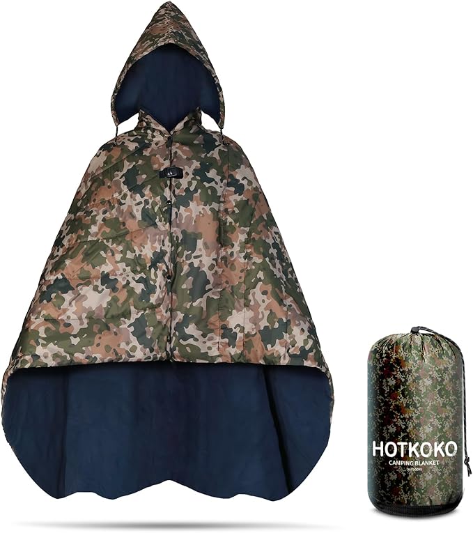 - STADIUM BLANKET WITH HOODED: The hotkoko Stadium Blanket is a wearable, removable and versatile poncho design. With an adjustable hood, it can be easily unfolded and converted into a poncho and cloak on rainy days.