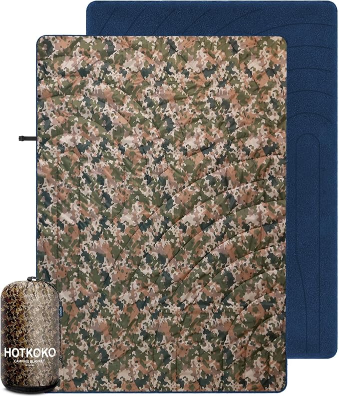 - WATERPROOF AND WARM:This fleece camping blanket is designed with three layers of waterproof and windproof nylon with a polyurethane coating and 300 grams per square of embossed polar fleece, the outdoor blanket is superbly waterproof, windproof and warm.