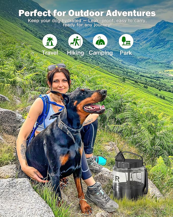 - 💯【77oz Large Dog Water Bottle】This 77oz large capacity portable dog travel water bottle is customised for your small medium large dogs, perfect for camping, hiking, walking, beach, car trips, etc., ensure your dog can drink fresh and healthy water during outdoor activities. The Best Portable Dog Water Bottle for Summer.