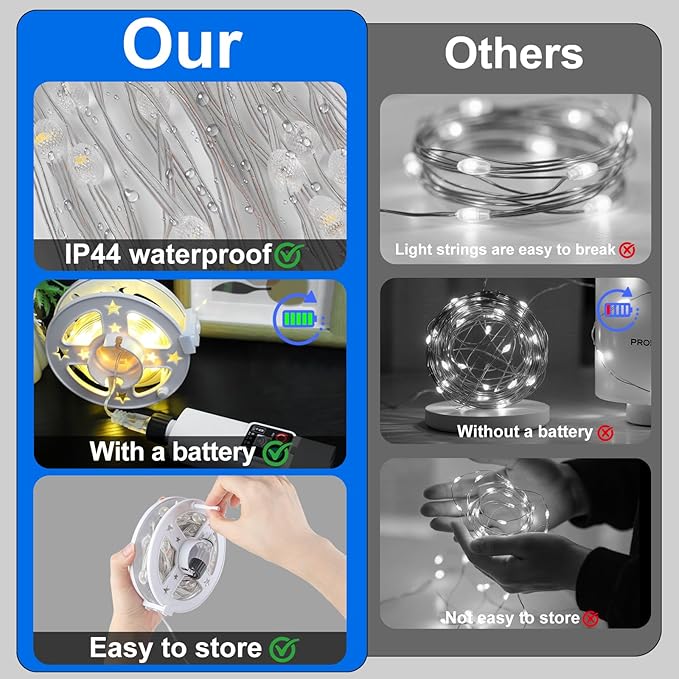 - 【Multifunctional Camping Light】The ultimate camping companion - our indoor/outdoor String Lights. These multifunctional camping lights are not just for illuminating your campsite. They double up as emergency lights. With a length of 33FT 100 LED, these lights transform into ambiance strings perfect for sprucing up your home, tent, or adding flair to birthday and holiday decorations. Hang them over your tent for a cozy glow or drape them around for a touch of romance.