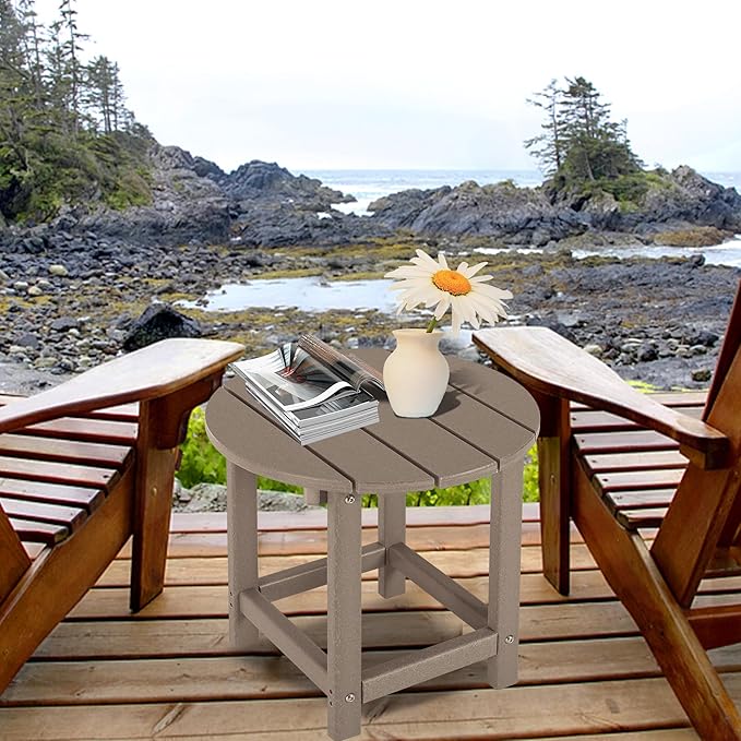 LZRS Round Adirondack Patio Side Table End Table, Outdoor Side Tables for Patio, Backyard,Pool, Indoor Companion, Easy Maintenance & Weather Resistant(Weather Wood)