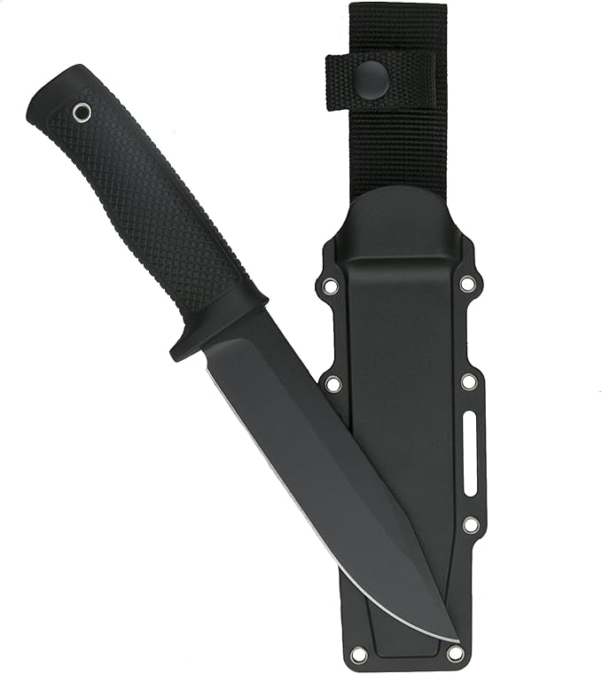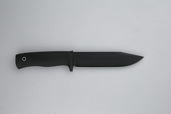 Tactical Fixed Blade Knife, 5.87 inch Blade, 4.65 inch Kray-Ex Handle, Stonewashed 420 Stainless Steel, with Secure-Ex Sheath for Outdoor Camping Hunting Survival (A-Black)