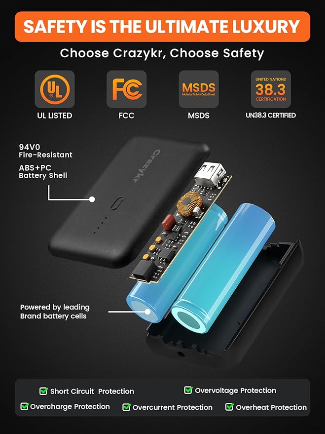 • Safety Is the Ultimate Luxury: Heated vest with battery pack included features 7.3V 5000mAh lithium battery certified by UL, FCC, MSDS,UN38.3. Offering protection from short circuit, overcharge, overvoltage, overcurrent, overheating. The ABS+PC battery housing is 94V0 flame-resistant, ensuring top-level fire safety and maximum protection. An NTC sensor prevents overheating. Carbon fiber heating offers flame resistance, and built-in short-circuit and overheat protection.