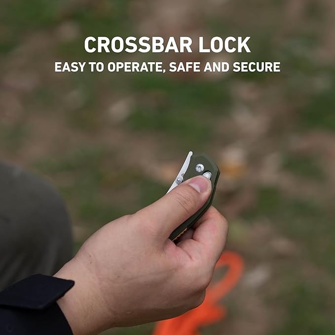 - Secure Crossbar Lock: Engineered with a crossbar lock and ceramic ball-bearing pivot construction, this edc pocket knife facilitates swift one-handed deployment and smooth operation, ensures safe and stable use in various situations