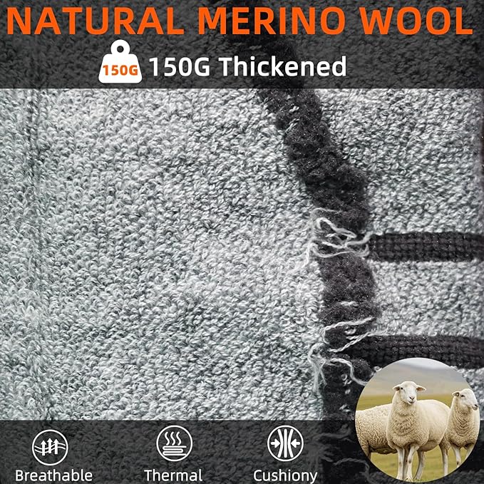 - THERMAL&BREATHABLE&CUSHIONY: FREEHILL heated socks are made of Merino wooland wool blend. Our laboratory has tested the material ratio through thousands of experiments. Wool is the warmest fabric, which can greatly reduce the heat loss of legs in cold conditions good breathability and elasticity. The heated socks with a net weight of over 150 grams, can effectively reduce the pressure on the legs and feet during exercise.