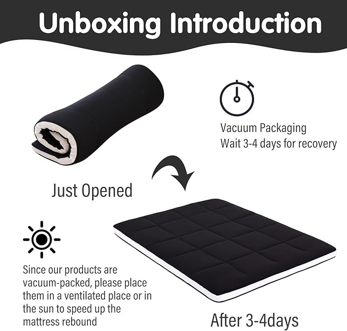 - 【Convenient Mattress Cover】: This futon mattress comes with a storage bag and two straps for easy transportation and storage. Whether you're going camping as a camping mat, as a mattress topper for tours, or as a relaxing rest mat for hosting guests, this foam sleeping mat is designed for convenience, ensuring you can enjoy comfort wherever you go