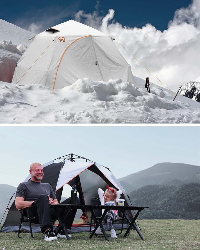 - Visibility And Ventilation: The camping tent is equipped with 2 ventilation windows on the top, and the door features 2 convection ventilation openings. The snow skirt can be rolled up for ventilation. These ventilation openings are designed to be adjustable, allowing you to flexibly control the airflow based on your needs. This allows you to enjoy a refreshing breeze in the hot summer or prevent indoor humidity on cold nights