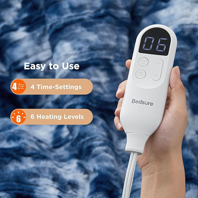 - CUSTOMIZABLE WARMTH: Experience quick, consistent, and safe warmth powered by PTC/NTC heating wire technology. This heated blanket features 6 heating levels and 4 time settings for personalized coziness, perfect for those always cold