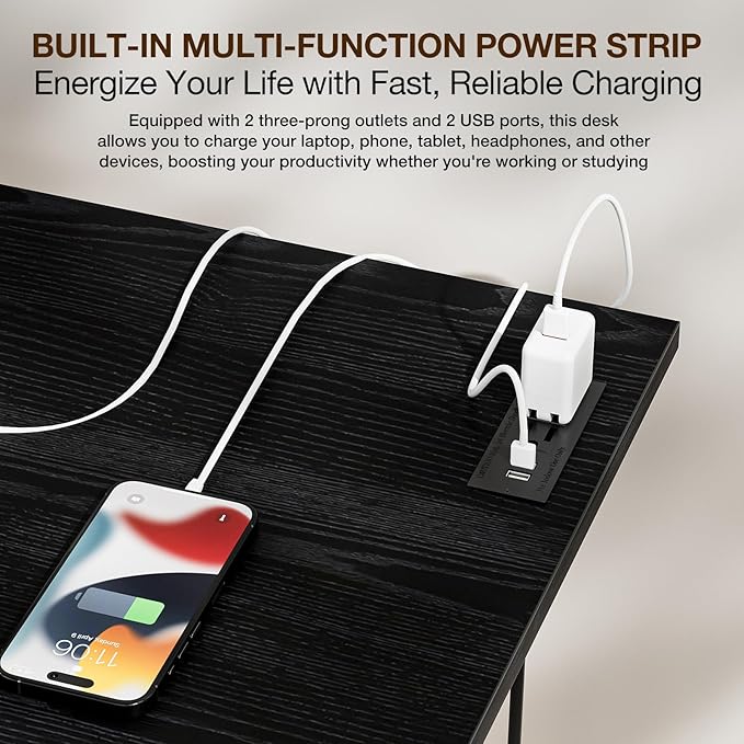 - ππ¨π¦π ππππ₯πππ‘π π£π’π₯π§π¦ & π£π’πͺππ₯ π’π¨π§πππ§π¦ β This L shaped gaming desk comes with a built-in power outlet, which provides 2 AC outlets and 2 USB ports. This desk streamlines device charging, ensuring both convenience and safety. Whether for gaming or intense work sessions, stay fully powered up without messing up your space with additional extension cords