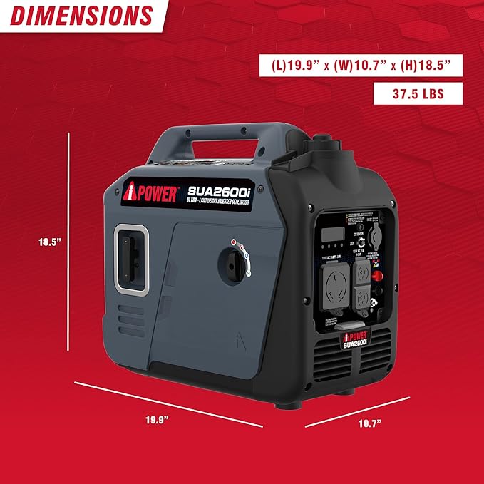 A-iPower Quiet Inverter Generator, 2600W RV Ready, EPA & CARB Compliant CO Sensor, Portable Ultra-Light Weight For Backup Home Use, Tailgating & Camping (SUA2600i)