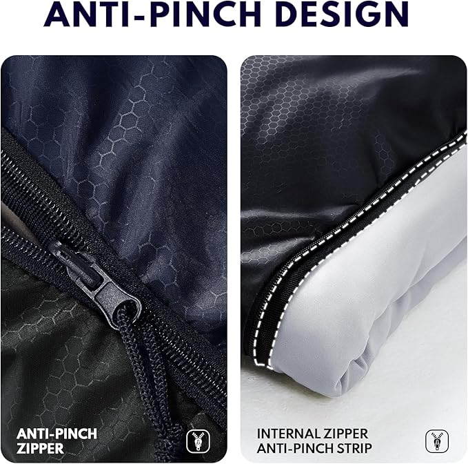 - 【LOTS OF SPACE TO WIGGLE AND PUT YOUR KNEES UP】You can unzip the feet separately to get some needed venting for additional comfort while still maintaining insulation. Two-way zipper with “zipper guard” to prevent stuck hooks effectively.