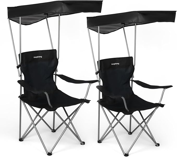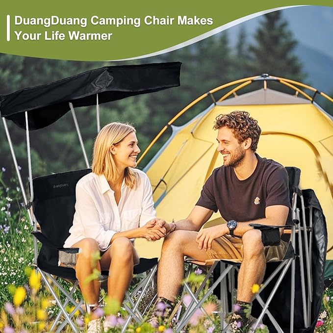 Camping Chair 2 Pack Portable Camping Chair with Canopy,Folding Chair with Canopy, Durable 600D Oxford Canopy Chair for Camping, Beach, Picnics, Fishing & Sports,Black
