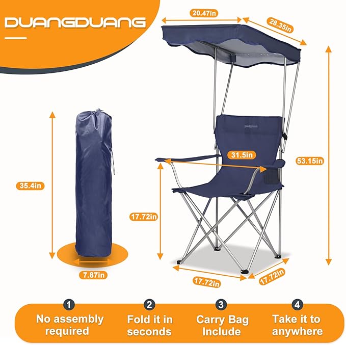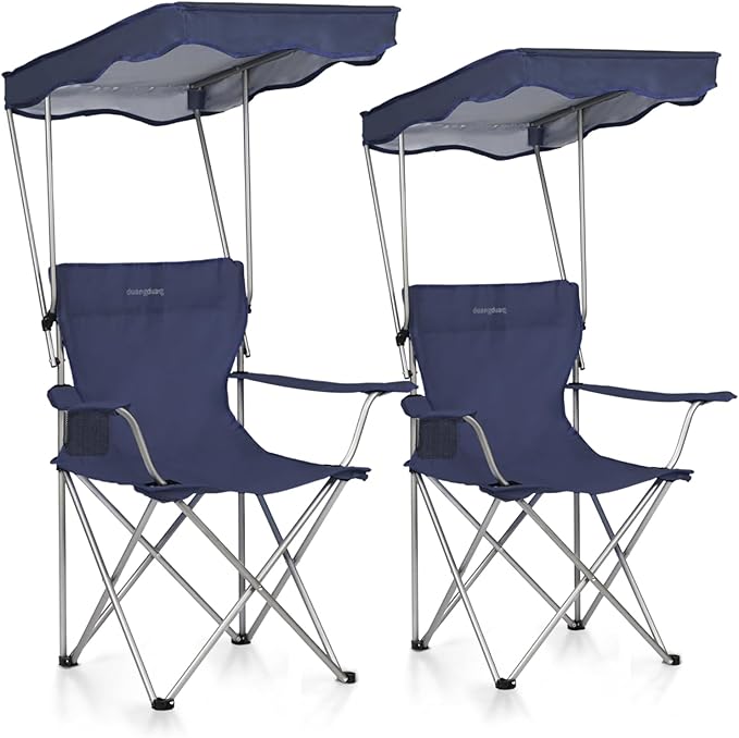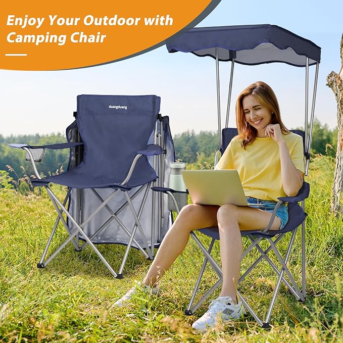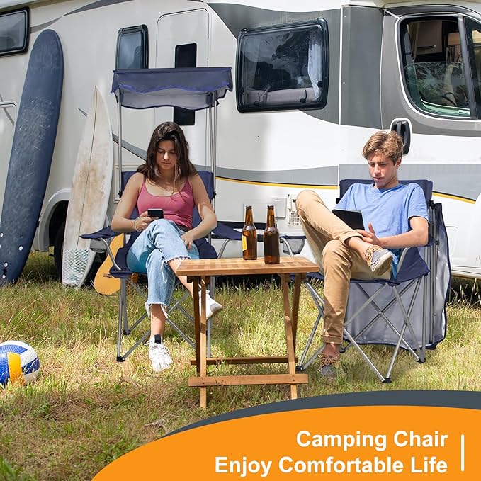 Camping Chair 2 Pack Portable Camping Chair with Canopy,Folding Chair with Canopy, Durable 600D Oxford Canopy Chair for Camping, Beach, Picnics, Fishing & Sports,NavyBlue