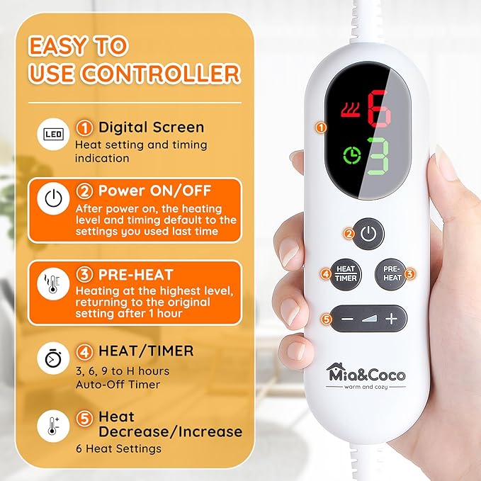 - 5๏ธโฃ ๐งผ Machine Washable & Easy to Maintain - Simply detach the controller and wash the pad by hand or machine as needed. Great for daily family use โ always fresh and ready.