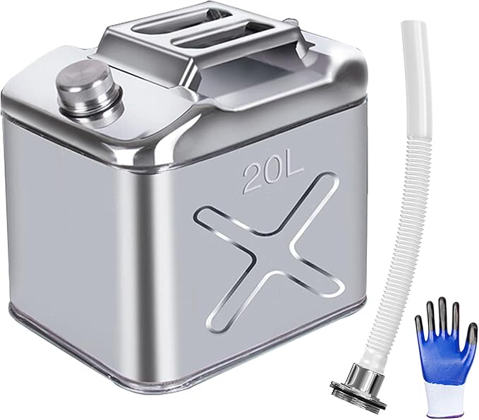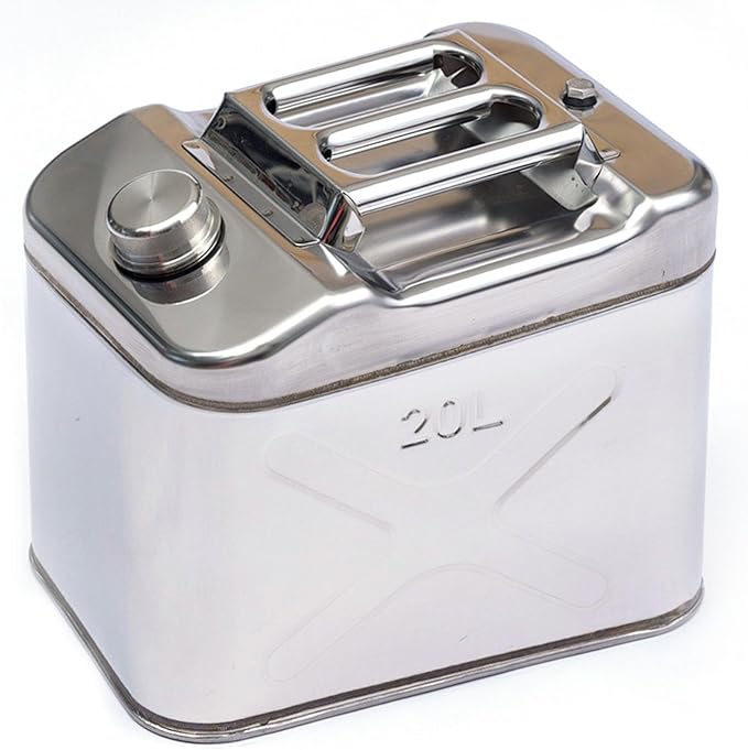 5 Gallon Metal Water Can 304 Stainless Steel Water Container with Flexible Spout/Nozzle System Pressure Relief Valve Safety Configuration for ATV UTV SUV MPV and Off Road Camping (20 Litre)