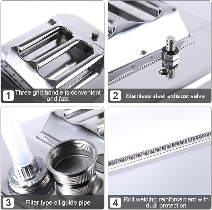 - Applicable to a variety of scenarios: widely used in road, water transportation and motor oil industry, and can store water/vehicle oil. It is a must-have for off-road and travel camping. It is also ideal for long-term spare liquid in the car. Tips for cleaning: After the plastic protective film on the handle, wipe it with a wet towel dipped in detergent to make cleaning easier.