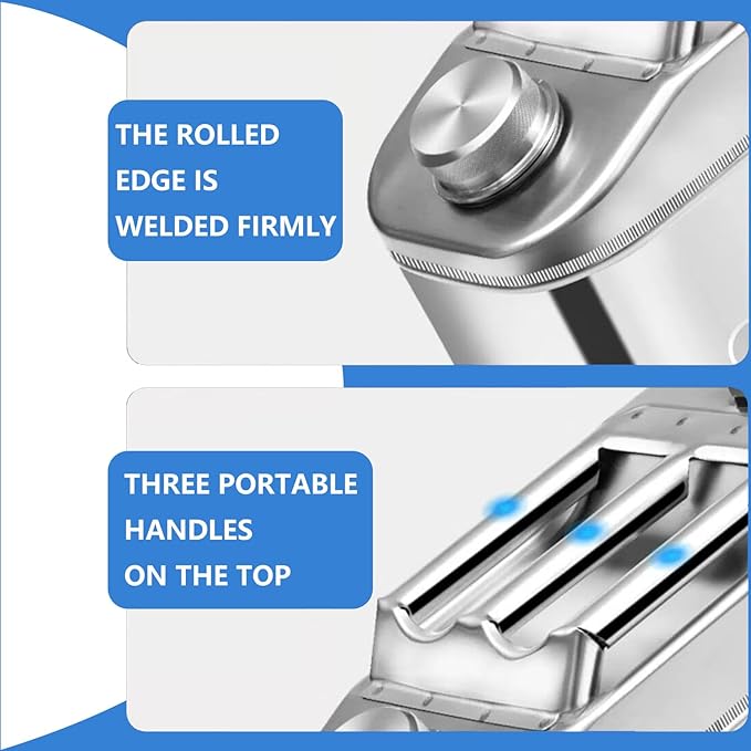 - 2.5-gallon capacity design: 2.5-gallon metal cans (14.1×10.2×8.2 inches) are designed for liquid storage, easily accommodating water, other liquids, camping emergency supplies, etc., meeting the needs of multiple scenarios such as long-distance transportation, industrial reserves, and outdoor adventures.