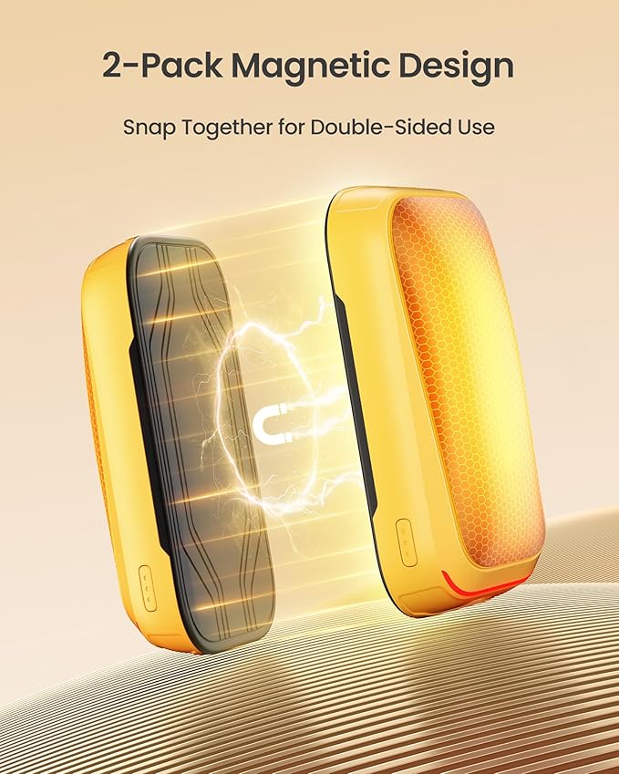 - 2-Pack Magnetic Design – Dual-Sided Heat When Combined: Use separately or magnetically attach the two hand warmers for a double-sided heater. Convenient for travel, storage, or anyone who prefers full-palm heat. No more losing one — they snap together effortlessly