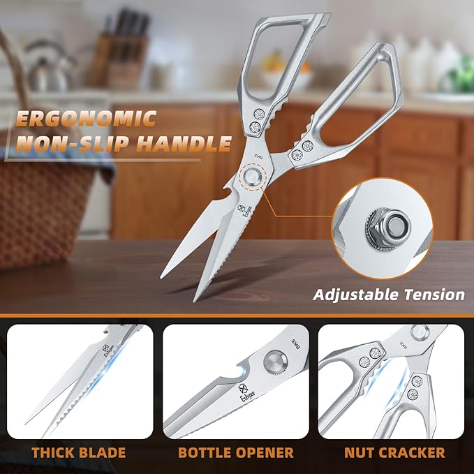 - All-Purpose Kitchen Utility - These kitchen scissors all purpose tools can handle it all—cutting chicken, trimming meat, chopping vegetables, opening bottles, cracking nuts, and even scraping fish scales. Strong and versatile, they’re essential cooking scissors for any busy kitchen—true scissors all purpose heavy duty performers.