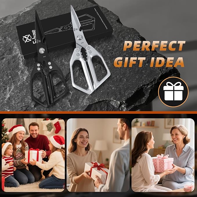 - Ergonomic Non-Slip Handles - Designed for comfort and control, the ergonomic handles fit all hand sizes. Whether you're slicing chicken or trimming veggies, these kitchen shears reduce hand fatigue and improve precision—ideal meat scissors and poultry shears for any home cook.