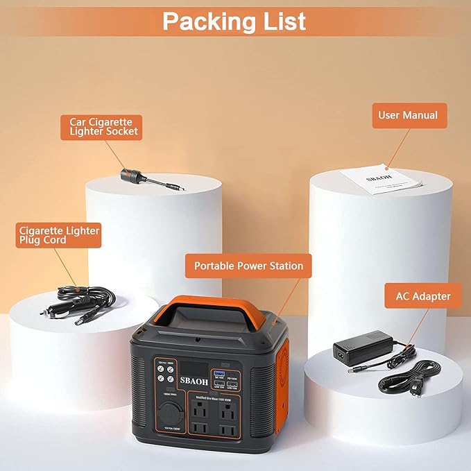 - 【AC Fast Charge& Easy to Carry】You can recharge your power station with an AC adapator when at home, driving the car outlet during a road trip or simply use a SBAOH power station. Portable handle makes it easy to carry around for outdoor activities,particularly convenient to carry.