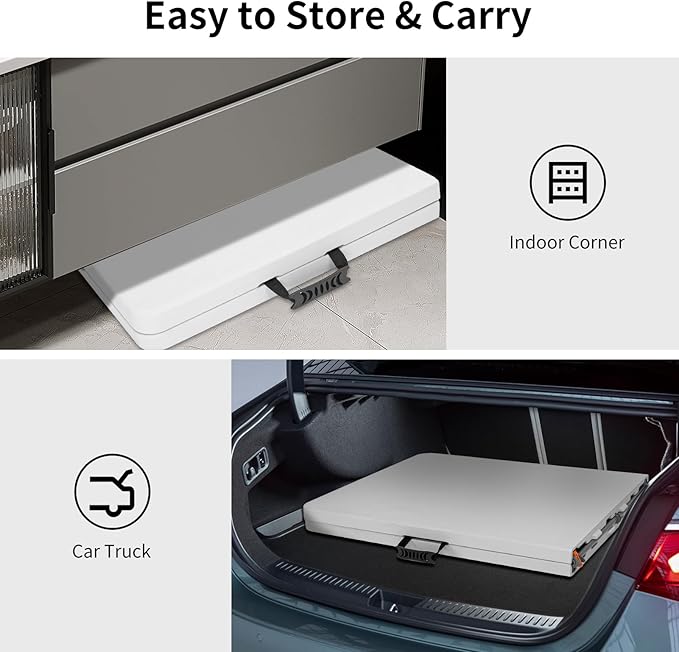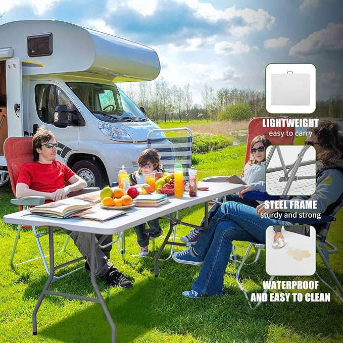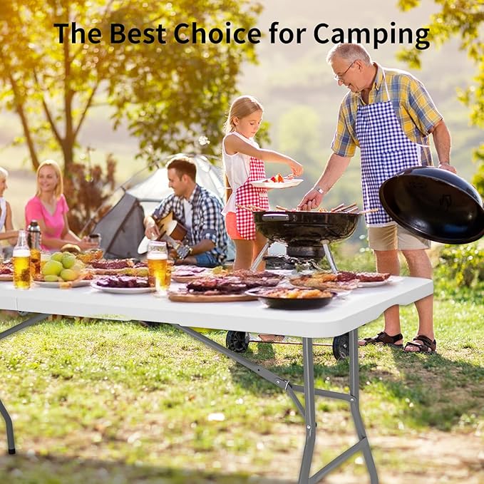 - Durable Structure: The heavy-duty folding table features an innovative locking mechanism that ensures exceptional stability when unfolded, while its smart folding design securely snaps the legs into dedicated slots on the opposite panel's backside, keeping the table perfectly compact and preventing accidental opening when folded. It is also a perfect gift for your family or friend