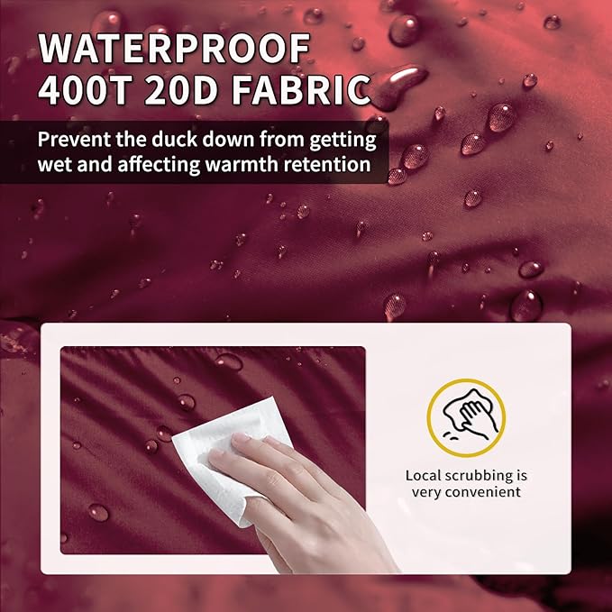 - Special Design: This adult sleeping bag is filled with 3.5 oz (approximately 0.4 in thick) of insulation per 10 square feet, from shoulders to feet. Even when the down loses some of its loft and warmth due to your body weight, it still locks in heat, preventing heat loss from your back and enhancing comfort for extended periods. This makes it ideal for outdoor activities and hiking, ensuring a sound sleep even in the wilderness and rainforest.