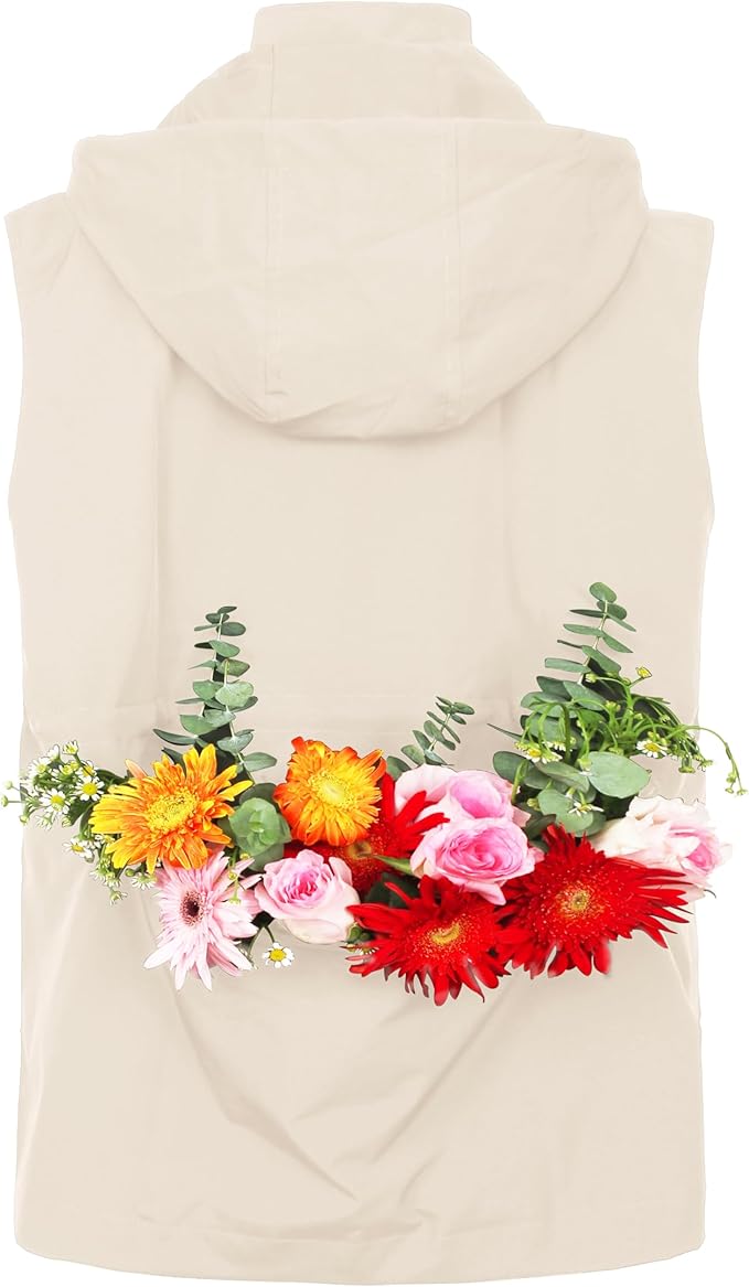 PESION Womens Packable Military Utility Vests Outerwear Waterproof Windbreaker Jacket Cargo Vest with Removable Hood