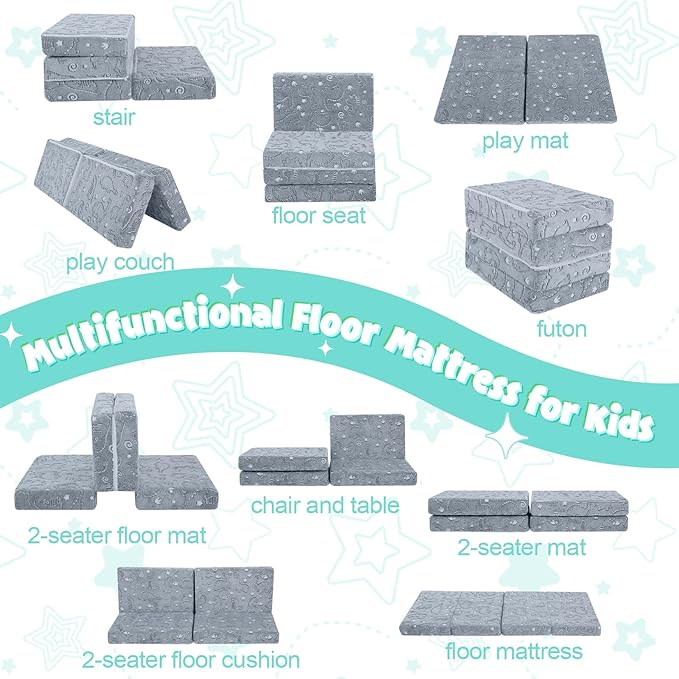 - Multifunctional Design: Kids foldable mattress floor bed. The ideal trifold mattress pad for kids to take a break! This tri folding mattress can be used as a toddler floor nap mat for daily use. A foldable futon mattress can be stacked to be used as children's pouf stools