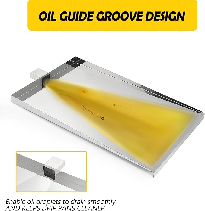 - Material & Dimension: Drip Pan tray: 19.5"L x 12.3"W x 1"H; Grease Pan Materials: Stainless Steel; You will get 1 pack stainless steel traeger grease pan. Drip pan fit for traeger parts replacement, traeger tailgater