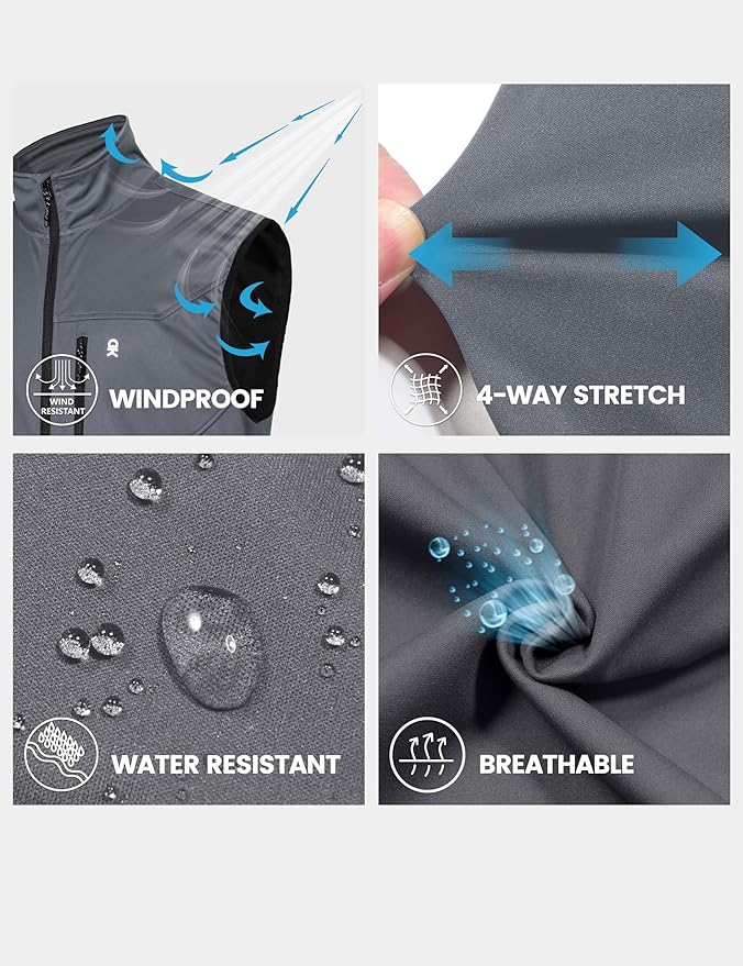 Little Donkey Andy Men's Lightweight Softshell Vest Windproof Sleeveless Jacket for Travel Hiking Running Golf