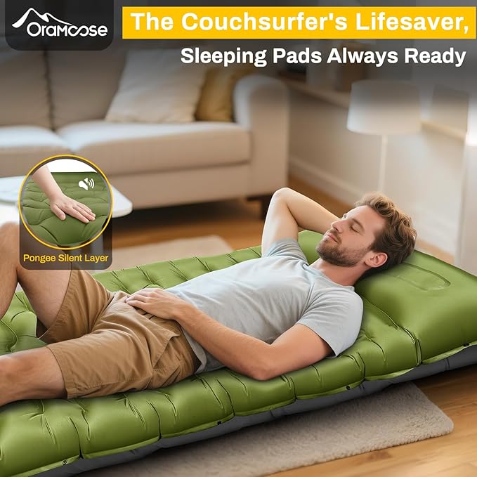 - 1 second putting together, free assembly: Can't get enough inflatable bed for multiple travelers? The snap button design on our Inflatable camping mattress allows you to splice multiple sleeping mats in 1 second, suitable for solo sleeping, double or multi-person family camping, say goodbye to the embarrassment of separation; color blocking and solid color dual choice, suitable for a variety of camping styles.