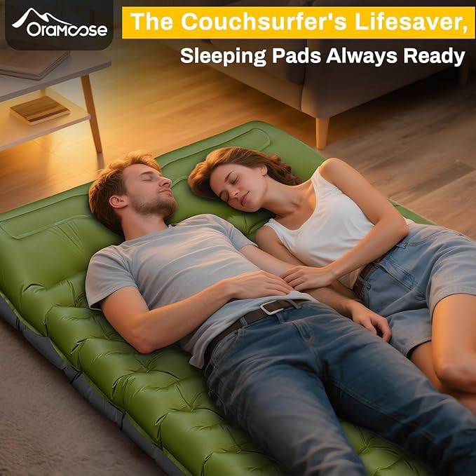 - 1 second putting together, free assembly: Can't get enough inflatable bed for multiple travelers? The snap button design on our Inflatable camping mattress allows you to splice multiple sleeping mats in 1 second, suitable for solo sleeping, double or multi-person family camping, say goodbye to the embarrassment of separation; color blocking and solid color dual choice, suitable for a variety of camping styles.