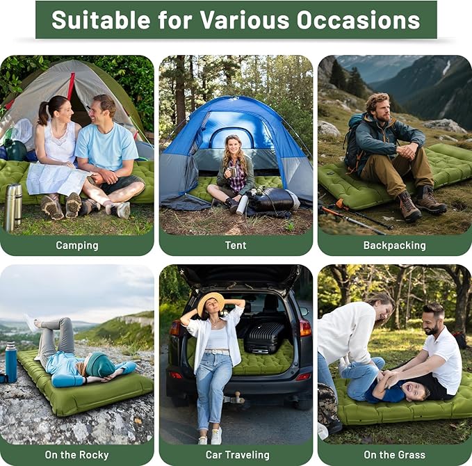 - Enjoy Upgrading Twin Sleeping Pad:Our camping bed mat has a connecting buckle on the side, which allows you to easily connect another one to make a double bed or larger camping mat, making you sleep more comfortably. It is perfect for camping with family and friends and is a great gift for friends or family. If you have any problems with the hiking sleeping pad, please feel free to contact us. Our professional customer service will make every effort to ensure your satisfaction.
