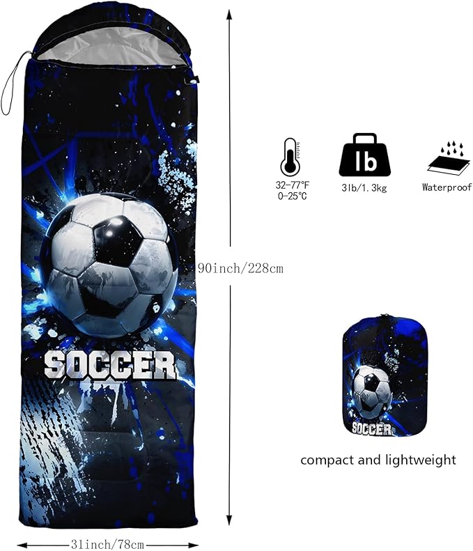 - 【FITS FOR 3 SEASONS】: SIZE - 31 by 90 inches (W x D). Our sleeping bag can be used in 3 seasons with a design temperature of 32℉-77℉(0℃-25℃). These bags also have a weather resistant waterproof design to keep you warm and prevent you from any dampness.